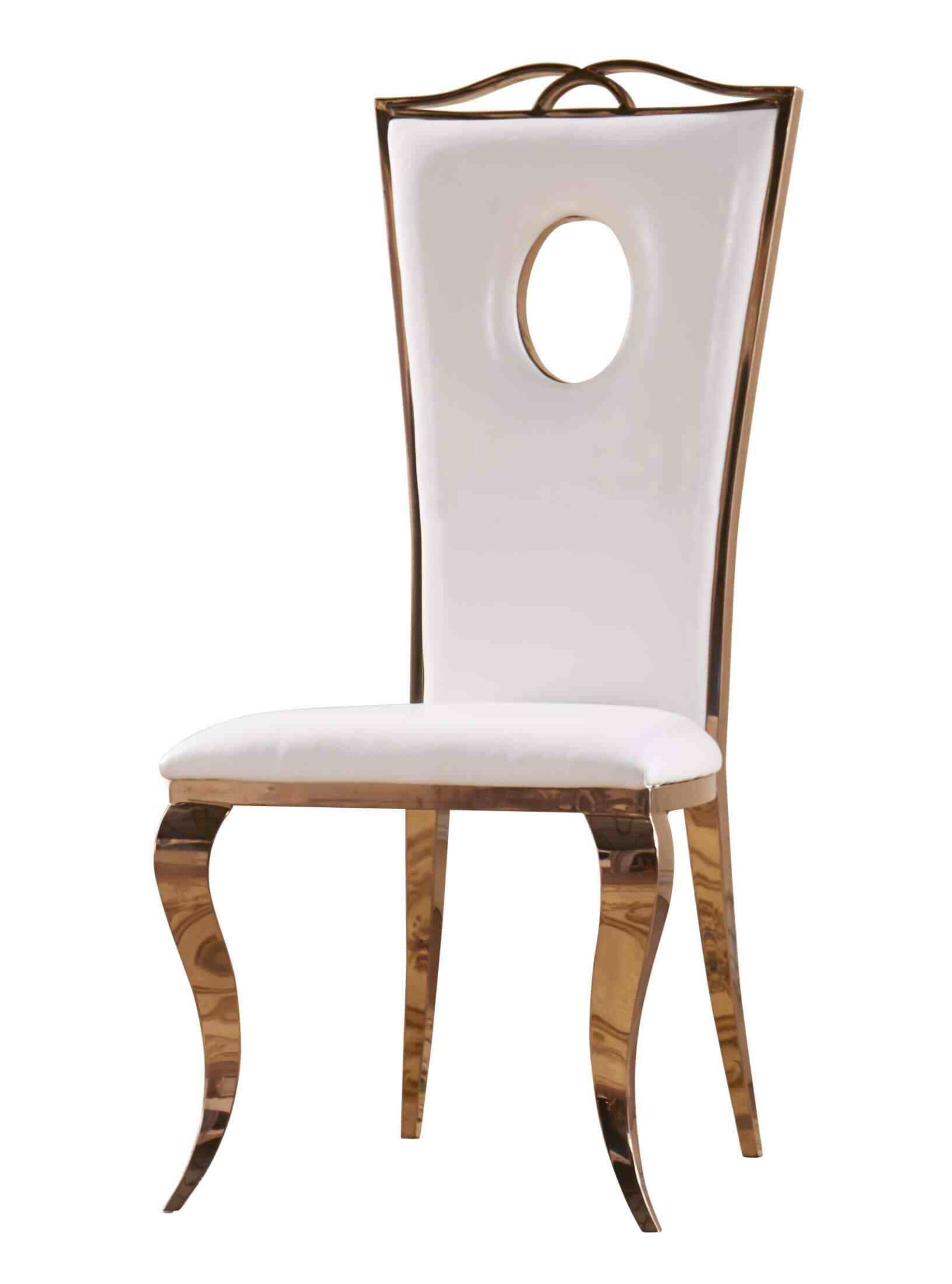 Description the modrest haslet modern white & rose gold dining chair features finely contoured lines upholstered in dainty white leatherette.